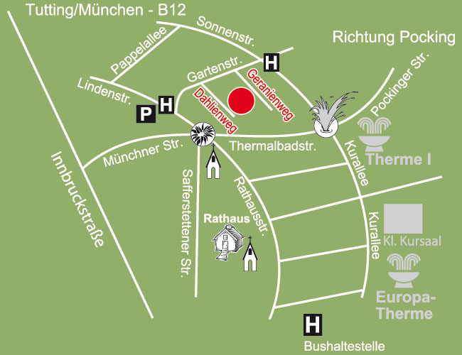 Nach Bad Füssing kommen Sie über Pocking A3, B12, B388.
